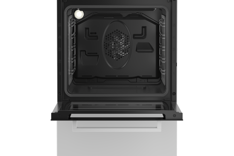 Cuisinière > 50 x 60 x 85 cm | Blanc | 4 Vitrocéramiques | Type de four : Multifonction – Chaleur brassée | Parois catalytiques latérales | Coffre abatant | 60 L | A